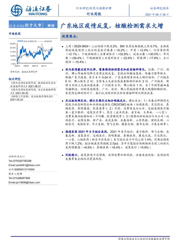 【海通证券】【20210606】医药与健康护理行业周报:广东地区疫情反复,核酸检测需求大增-5页
