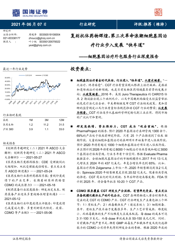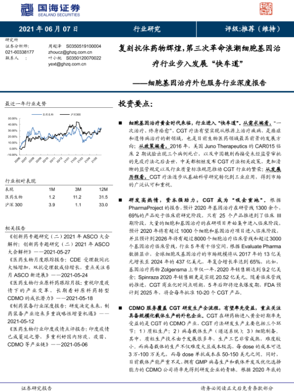 【国海证券】【20210607】复刻抗体药物辉煌,第三次革命浪潮细胞基因治疗行业步入发展“快车道”-20页