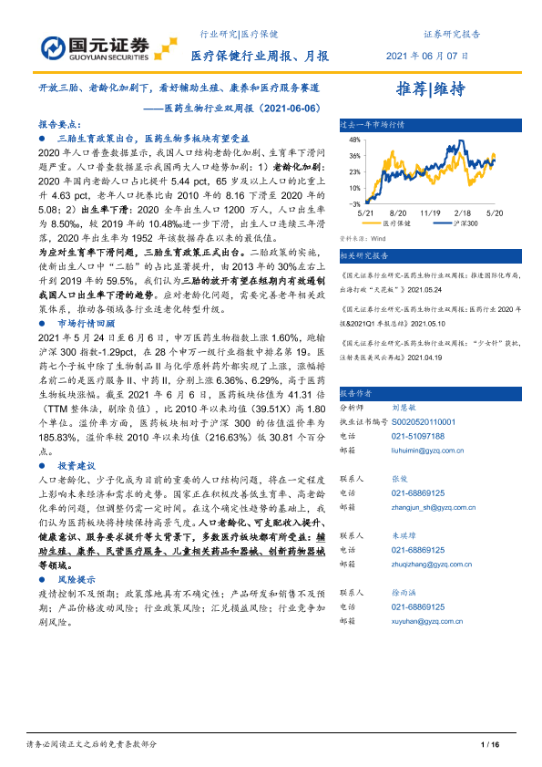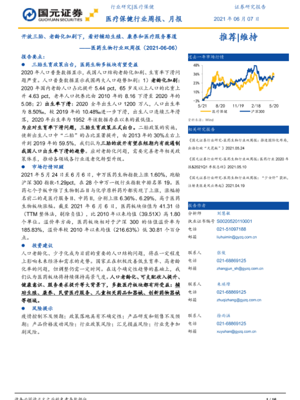 【国元证券】【20210607】医药生物行业双周报:开放三胎、老龄化加剧下,看好辅助生殖、康养和医疗服务赛道-16页