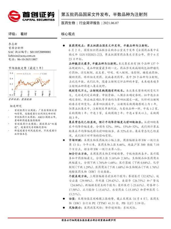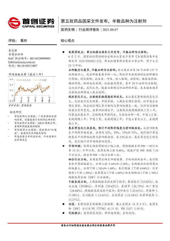 【首创证券】【20210607】第五批药品国采文件发布,半数品种为注射剂-10页
