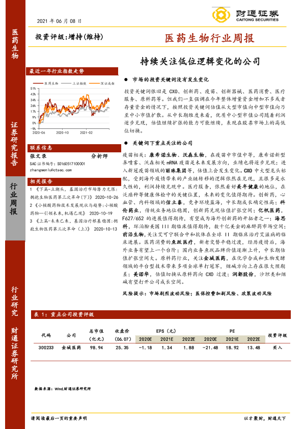 【财通证券】【20210608】医药生物行业周报:持续关注低位逻辑变化的公司-8页