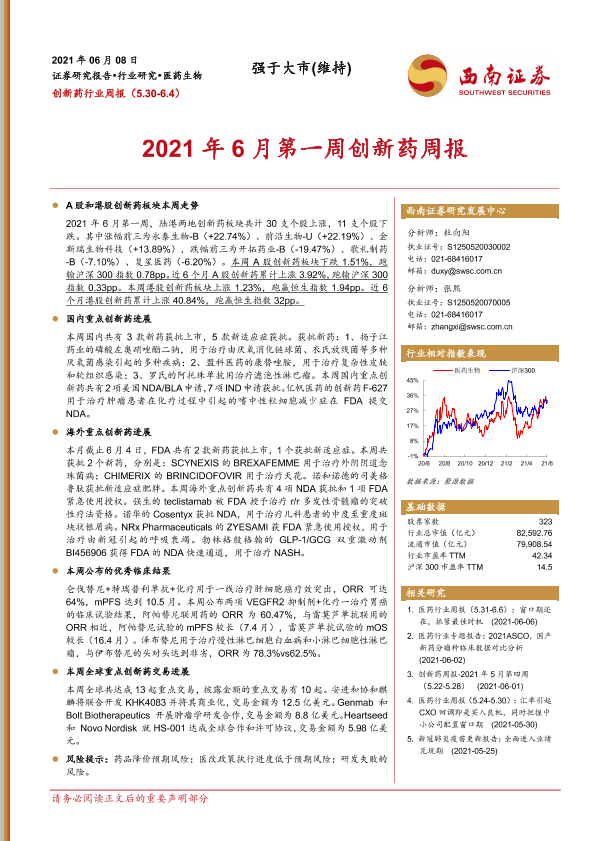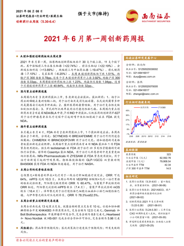 【西南证券】【20210608】2021年6月第一周创新药周报-18页
