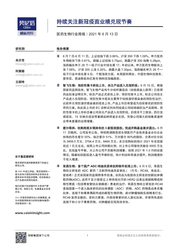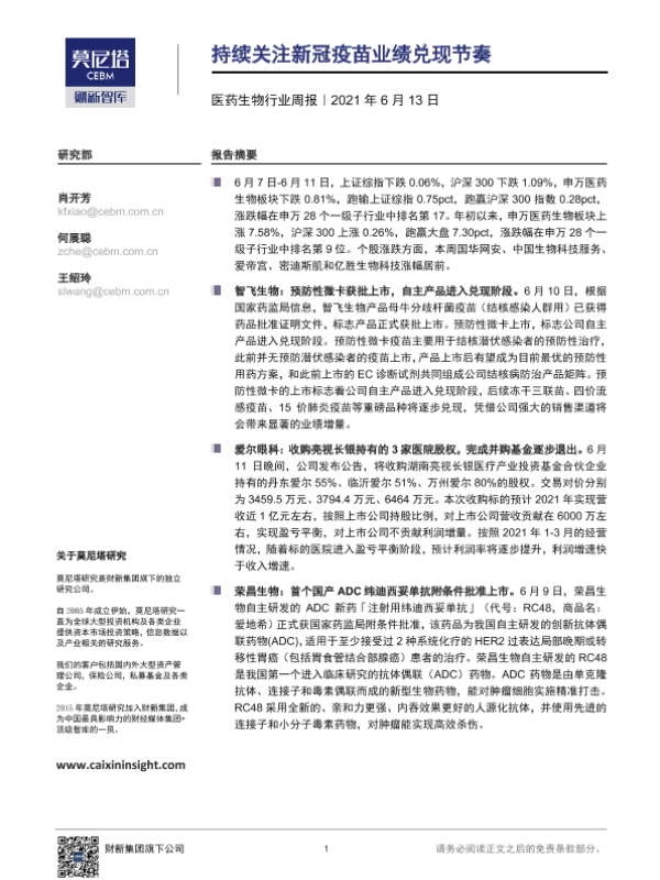 【莫尼塔研究】【20210613】持续关注新冠疫苗业绩兑现节奏-7页