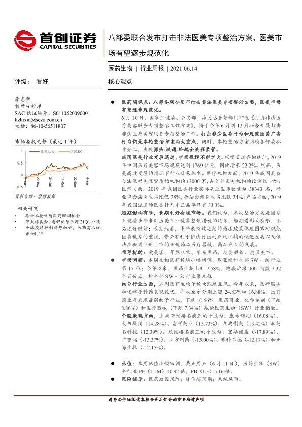 【首创证券】【20210614】八部委联合发布打击非法医美专项整治方案,医美市场有望逐步规范化-11页