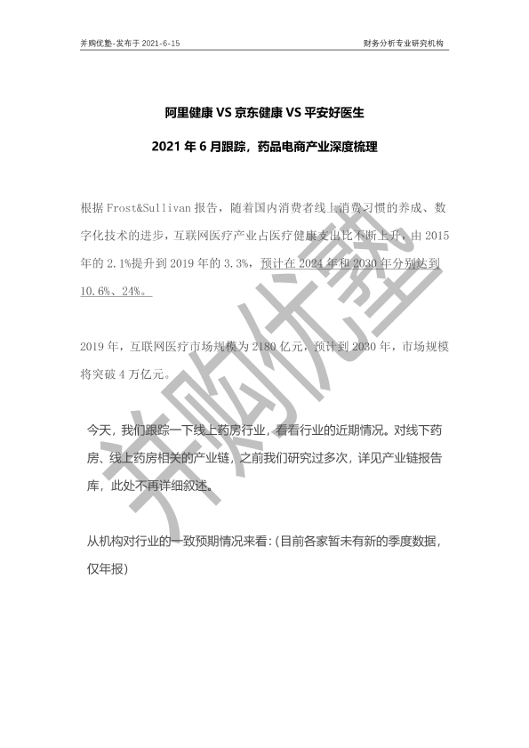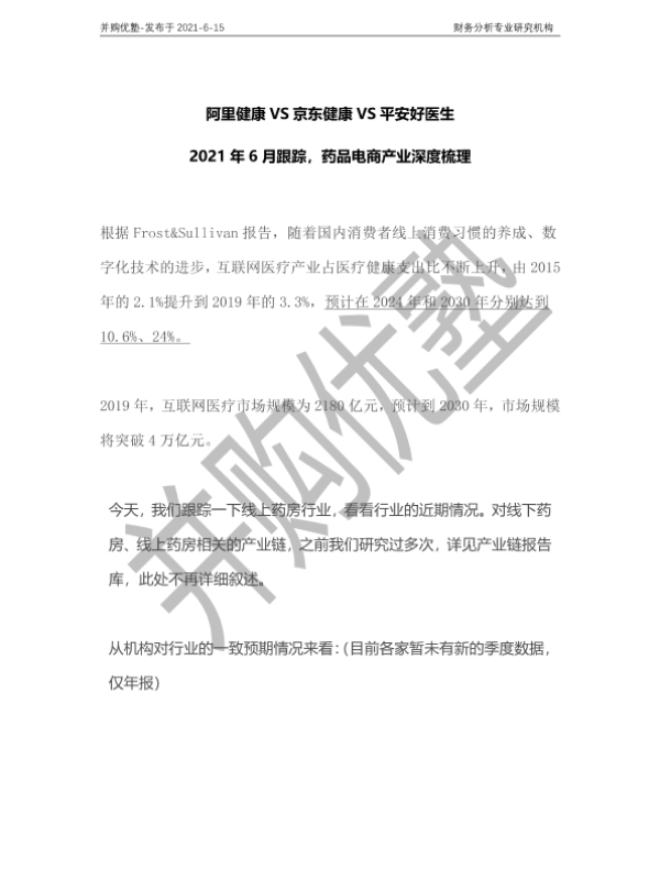 【并购优塾】【20210615】阿里健康VS京东健康VS平安好医生:2021年6月跟踪,药品电商产业深度梳理-19页