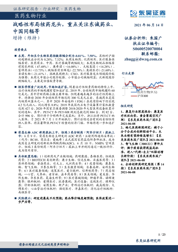 【东吴证券】【20210614】医药生物行业跟踪周报:战略性布局核药龙头-23页