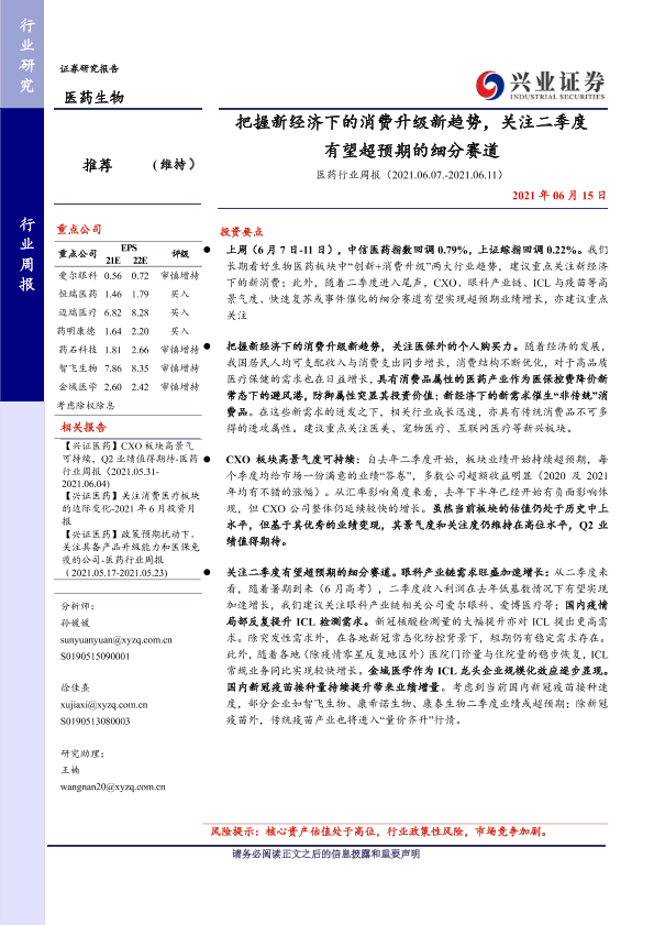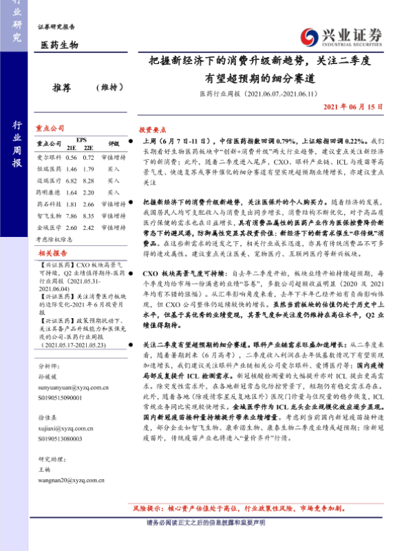 CXO板块 医药行业 消费升级 疫苗 细分赛道