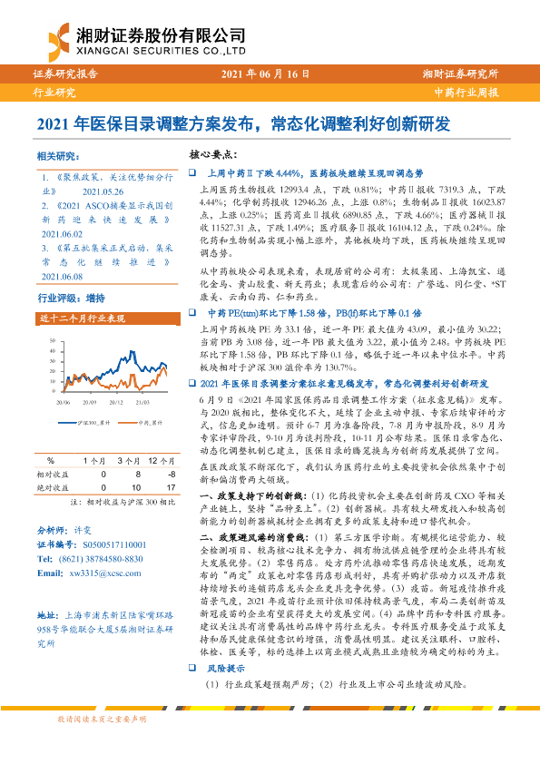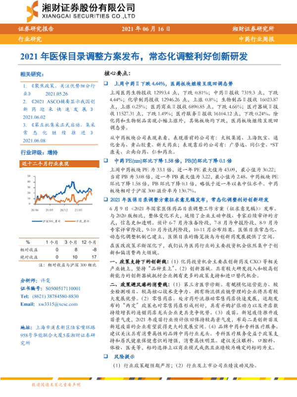 【湘财证券】【20210616】2021年医保目录调整方案发布,常态化调整利好创新研发-11页