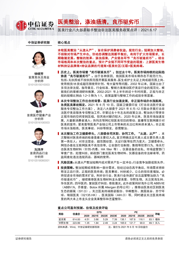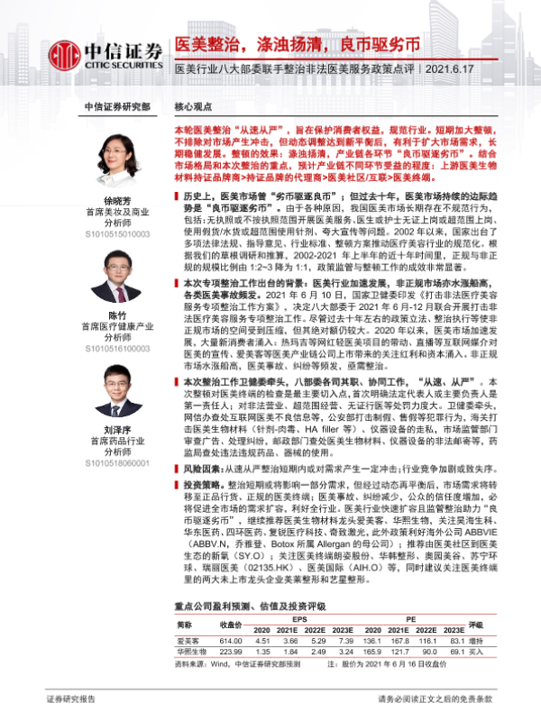【中信证券】【20210617】医美行业八大部委联手整治非法医美服务政策点评-7页
