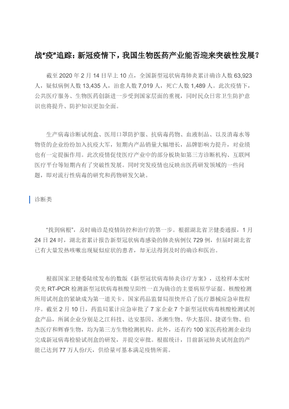 医用防护 新冠疫情 新药研发 生物医药 诊断试剂