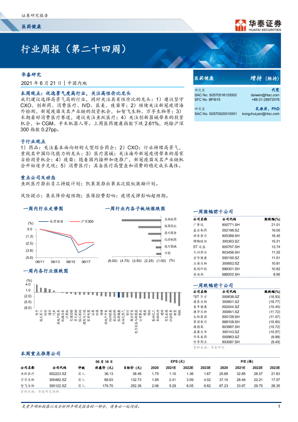 【华泰证券】【20210621】医药健康行业周报(第二十四周)-12页