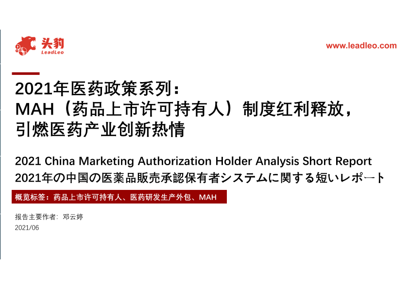 【头豹研究院】【202106】2021年医药政策系列:MAH(药品上市许可持有人)制度红利释放,引燃医药产业创新热情-26页