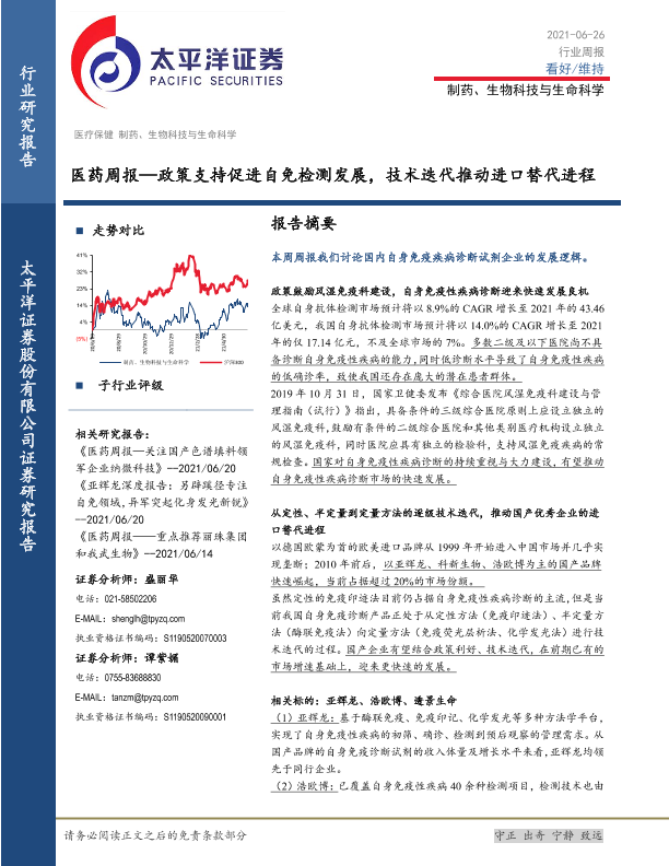【太平洋证券】【20210626】医药周报:政策支持促进自免检测发展,技术迭代推动进口替代进程-24页