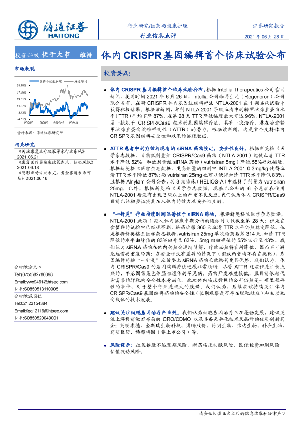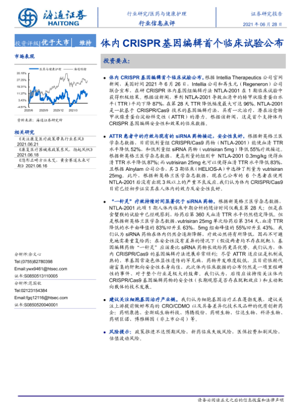 【海通证券】【20210628】体内CRISPR基因编辑首个临床试验公布-2页