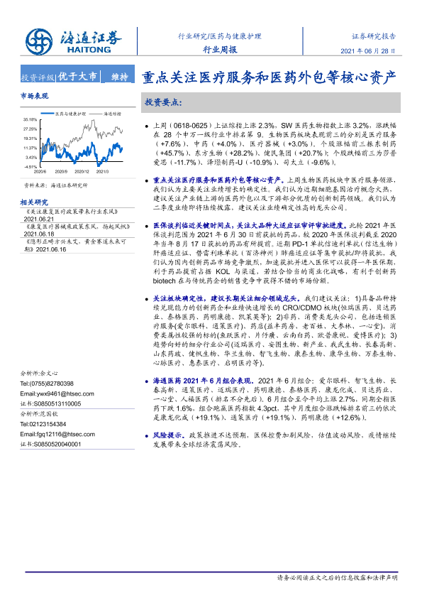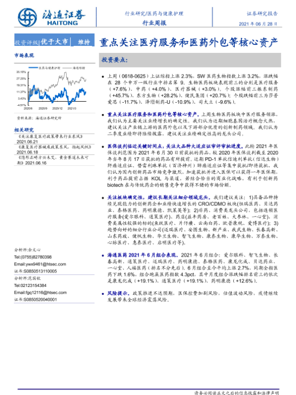 【海通证券】【20210628】医药与健康护理行业周报:重点关注医疗服务和医药外包等核心资产-8页