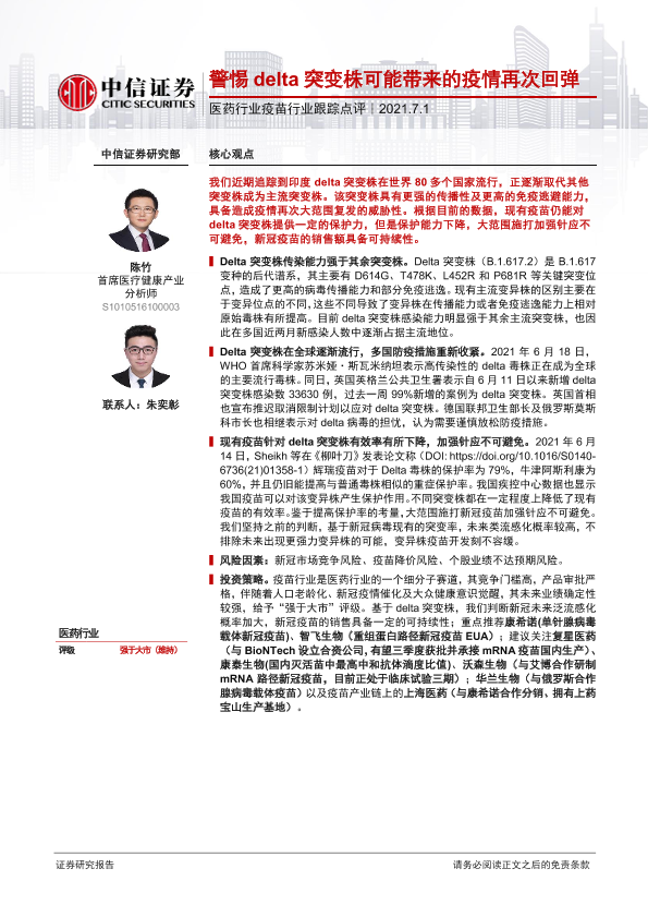 【中信证券】【20210701】医药行业疫苗行业跟踪点评:警惕delta突变株可能带来的疫情再次回弹-2页