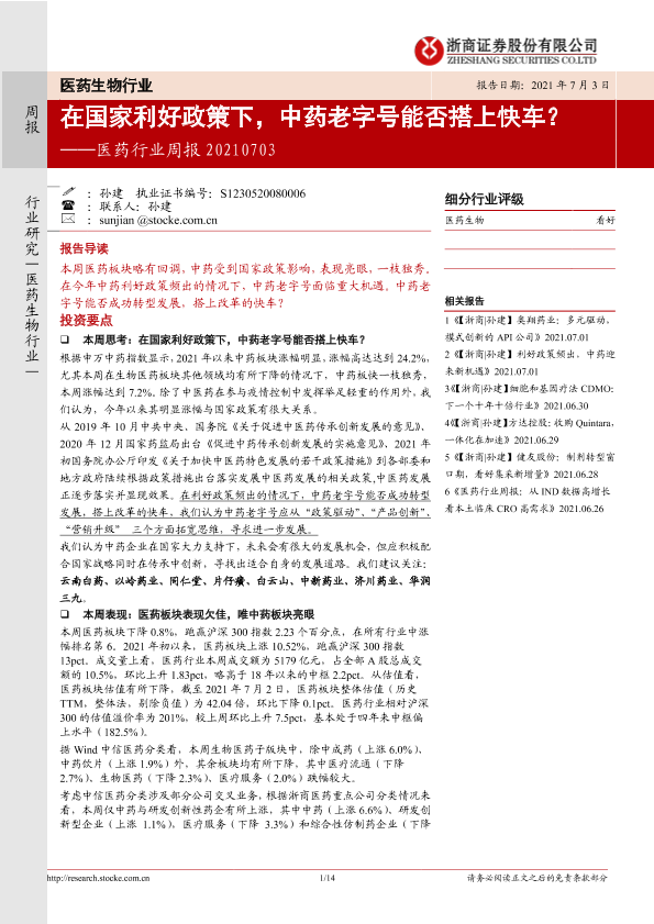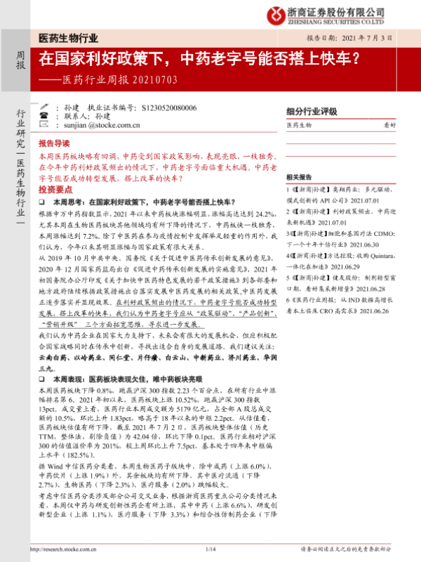 【浙商证券】【20210703】在国家利好政策下,中药老字号能否搭上快车?-14页