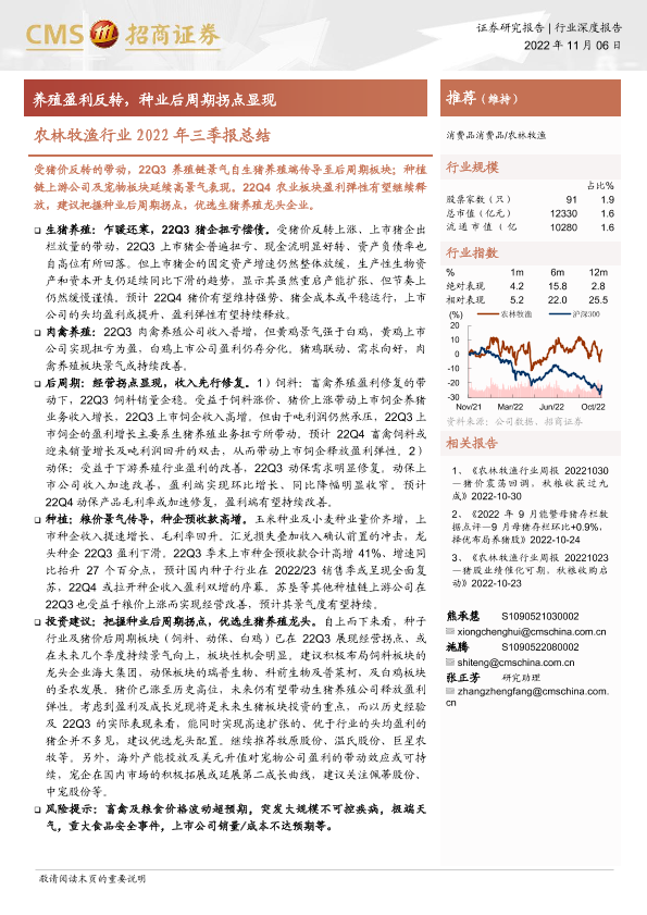 【海通证券】【20221106】农林牧渔行业2022年三季报总结:养殖盈利反转,种业后周期拐点显现-36页