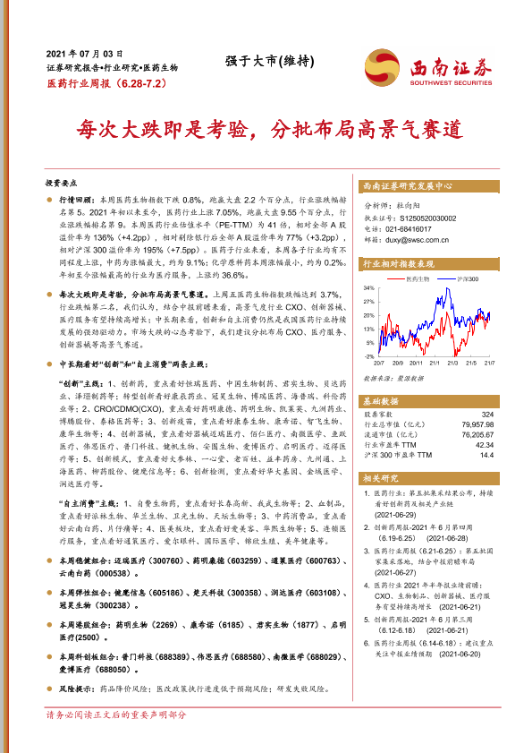 【西南证券】【20210703】医药行业周报:每次大跌即是考验,分批布局高景气赛道-34页