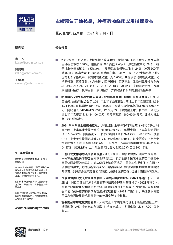 【莫尼塔研究】【20210704】医药生物行业周报:业绩预告开始披露,肿瘤药物临床应用指标发布-8页