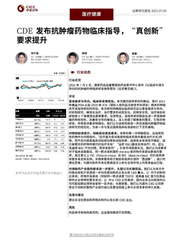 【中金公司】【20210705】CDE发布抗肿瘤药物临床指导,“真创新”要求提升-5页