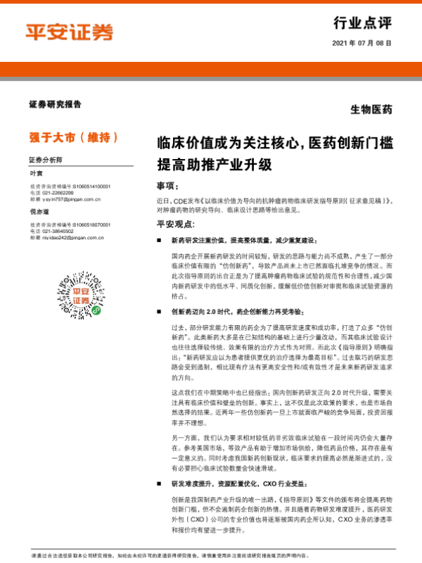 【平安证券】【20210708】临床价值成为关注核心,医药创新门槛提高助推产业升级-3页