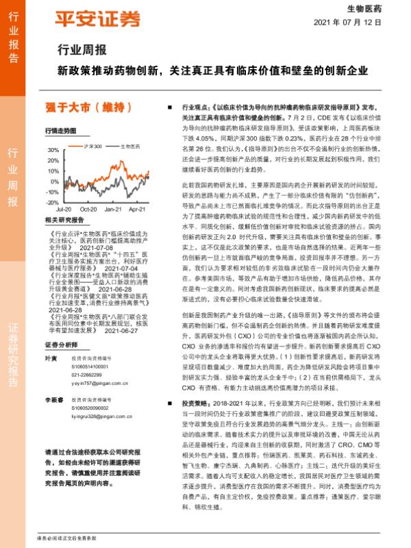 【平安证券】【20210712】新政策推动药物创新,关注真正具有临床价值和壁垒的创新企业-7页