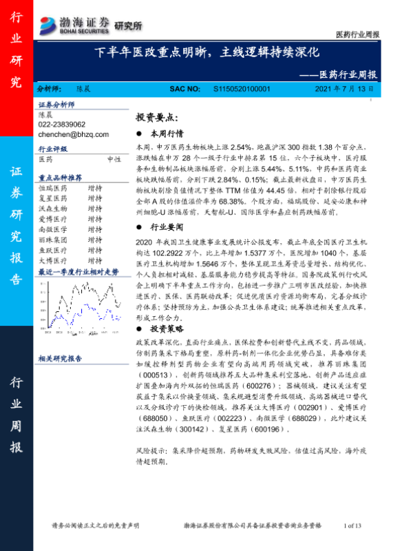 【渤海证券】【20210713】下半年医改重点明晰,主线逻辑持续深化-13页