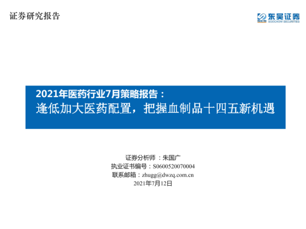 【东吴证券】【20210712】逢低加大医药配置,把握血制品十四五新机遇-44页