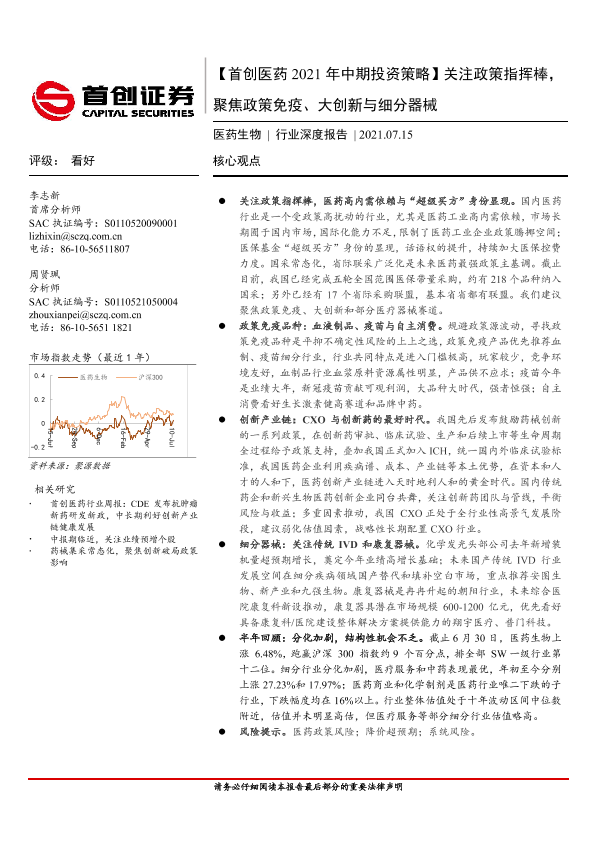 【首创证券】【20210715】2021年中期投资策略:关注政策指挥棒,聚焦政策免疫、大创新与细分器械-34页