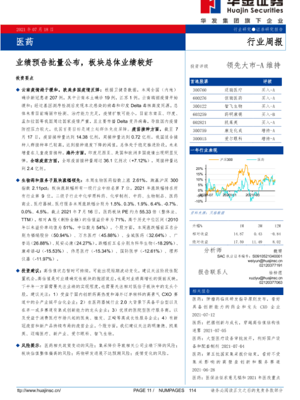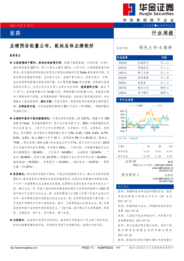 【华金证券】【20210718】医药行业周报:业绩预告批量公布,板块总体业绩较好-18页
