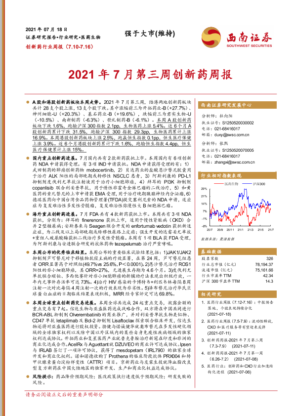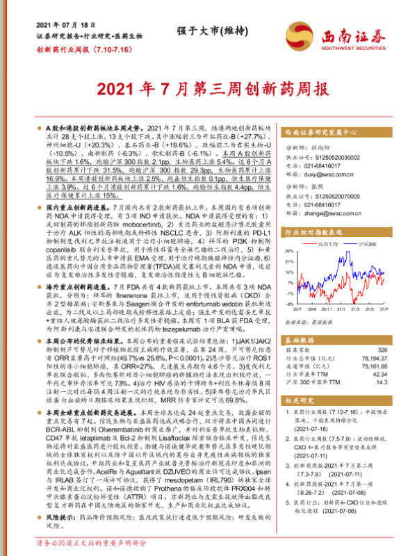 【西南证券】【20210718】2021年7月第三周创新药周报-16页
