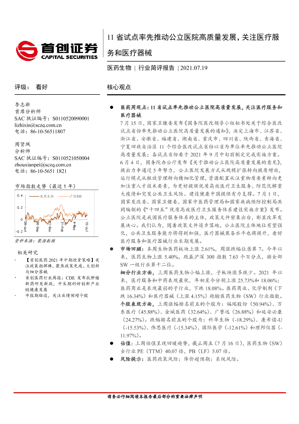 【首创证券】【20210719】11省试点率先推动公立医院高质量发展,关注医疗服务和医疗器械-9页