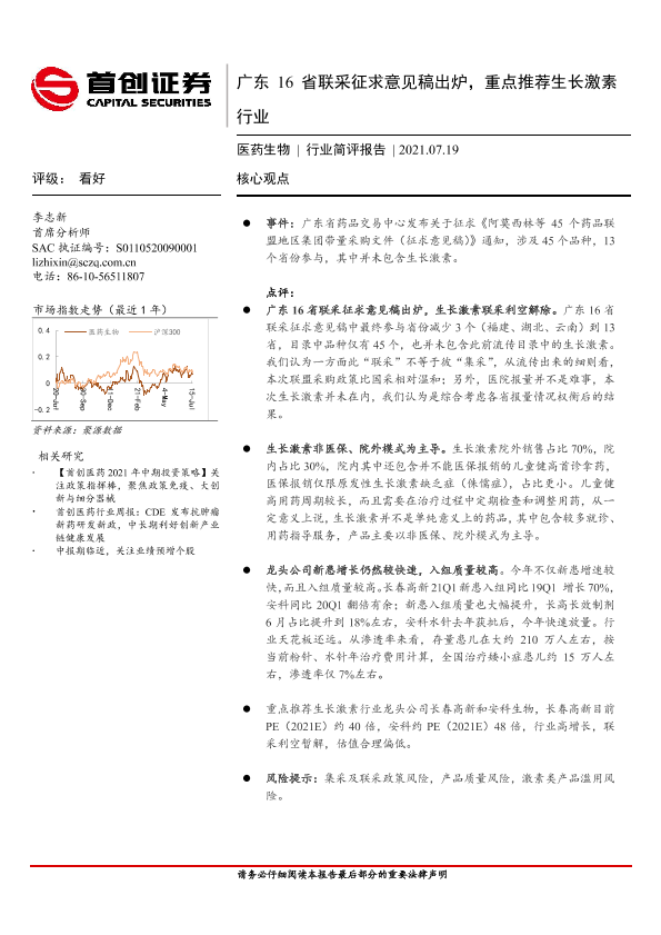 【首创证券】【20210719】广东16省联采征求意见稿出炉,重点推荐生长激素行业-3页