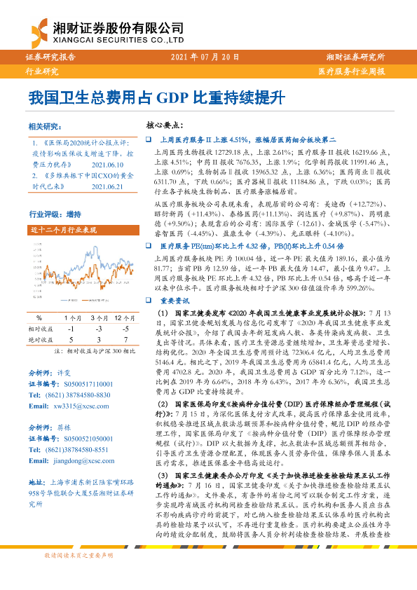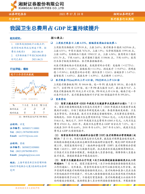 【湘财证券】【20210720】我国卫生总费用占GDP比重持续提升-10页