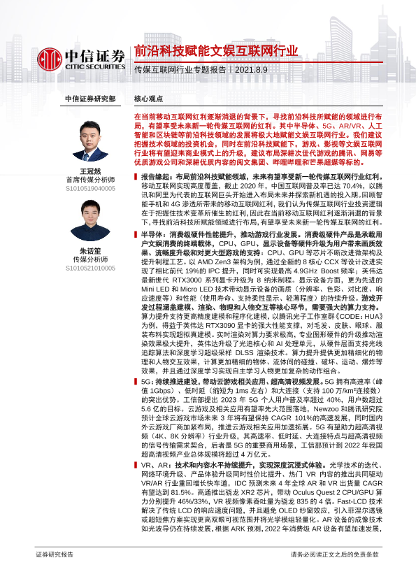 【中信证券】【20210809】传媒互联网行业专题报告:前沿科技赋能文娱互联网行业-39页