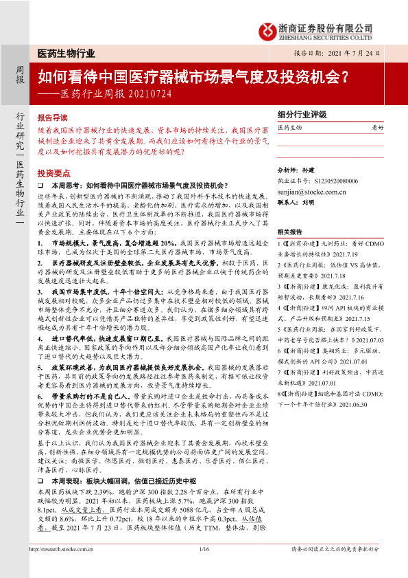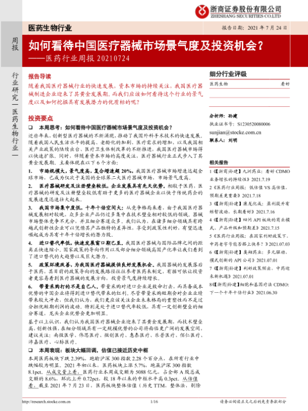 【浙商证券】【20210724】如何看待中国医疗器械市场景气度及投资机会-16页