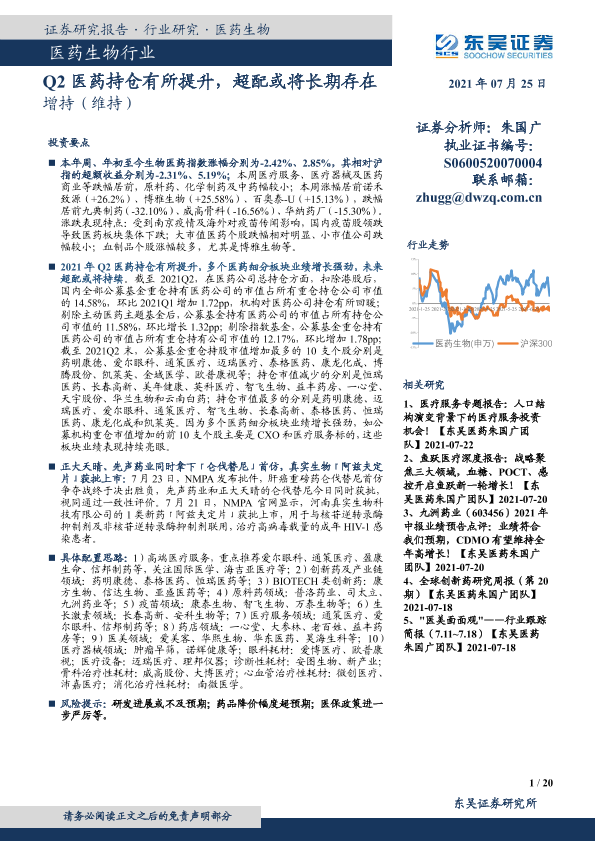 【东吴证券】【20210725】医药生物行业:Q2医药持仓有所提升,超配或将长期存在-20页