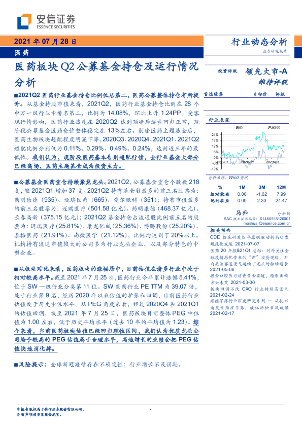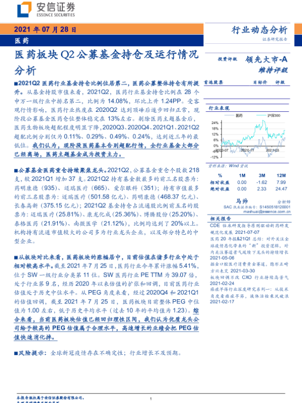 【安信证券】【20210728】医药行业动态分析:医药板块Q2公募基金持仓及运行情况分析-12页