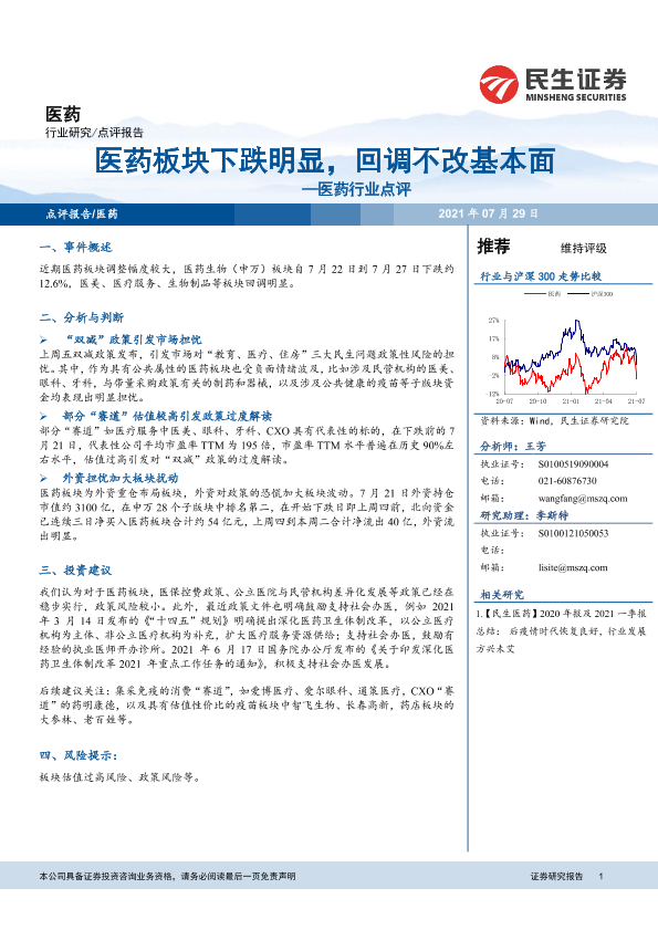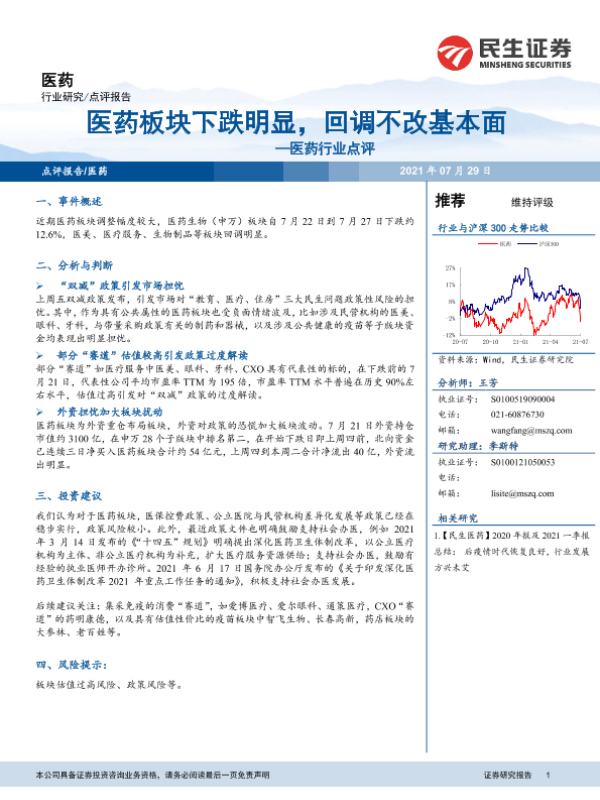 【民生证券】【20210729】医药板块下跌明显,回调不改基本面-4页