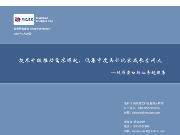 【信达证券】【20210729】技术升级推动需求崛起,低集中度头部玩家成长空间大——胶原蛋白行业专题报告-57页