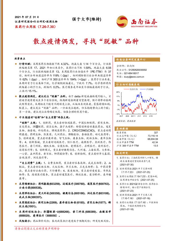 【西南证券】【20210731】医药行业周报:散点疫情偶发,寻找“脱敏”品种-33页