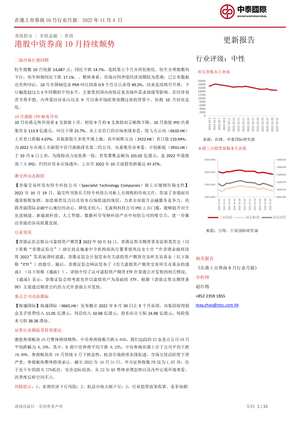 【中泰国际】【20221104】券商行业:港股中资券商10月持续颓势-16页