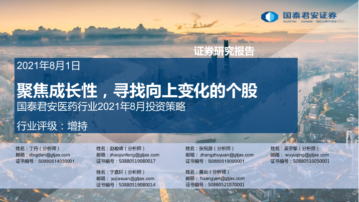 【国泰君安证券】【20210801】医药行业2021年8月投资策略:聚焦成长性,寻找向上变化的个股-29页