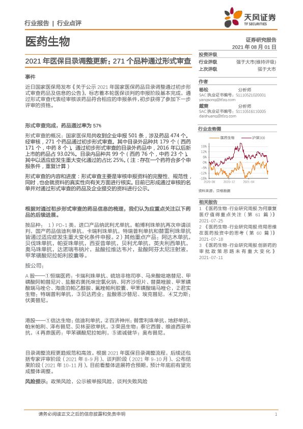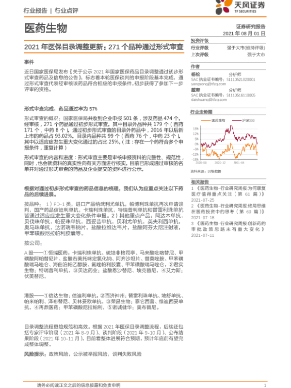【天风证券】【20210801】2021年医保目录调整更新:271个品种通过形式审查-2页