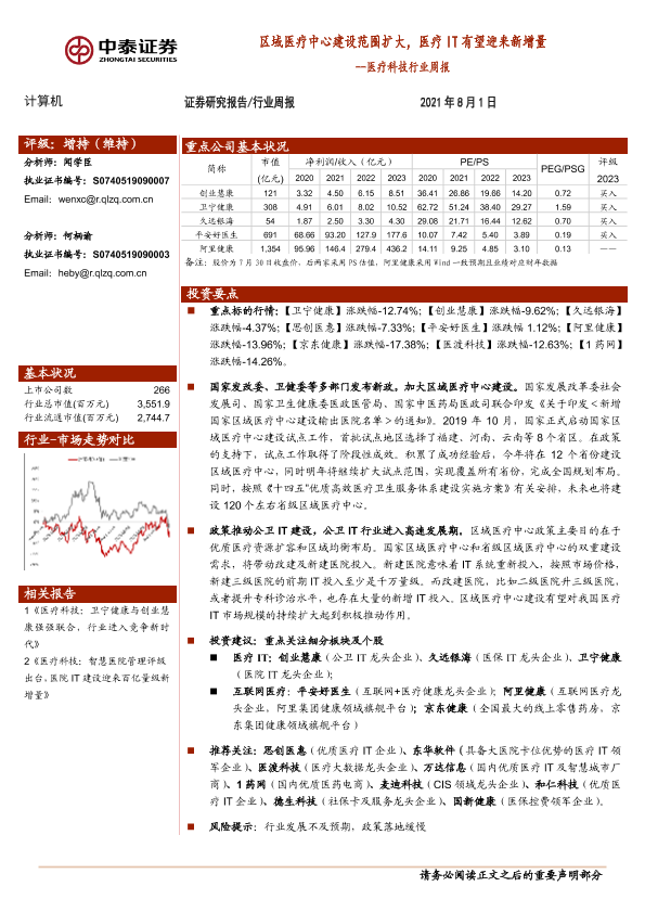 【中泰证券】【20210801】区域医疗中心建设范围扩大,医疗IT有望迎来新增量-9页
