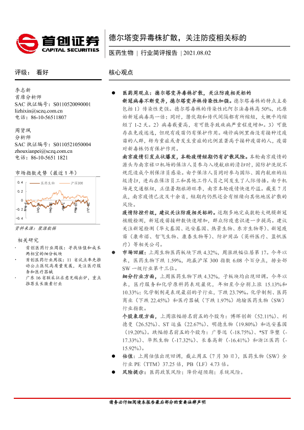 【首创证券】【20210802】医药生物行业简评报告:德尔塔变异毒株扩散,关注防疫相关标的-9页