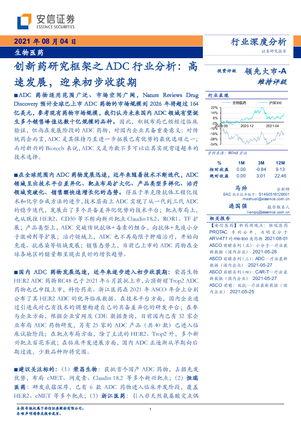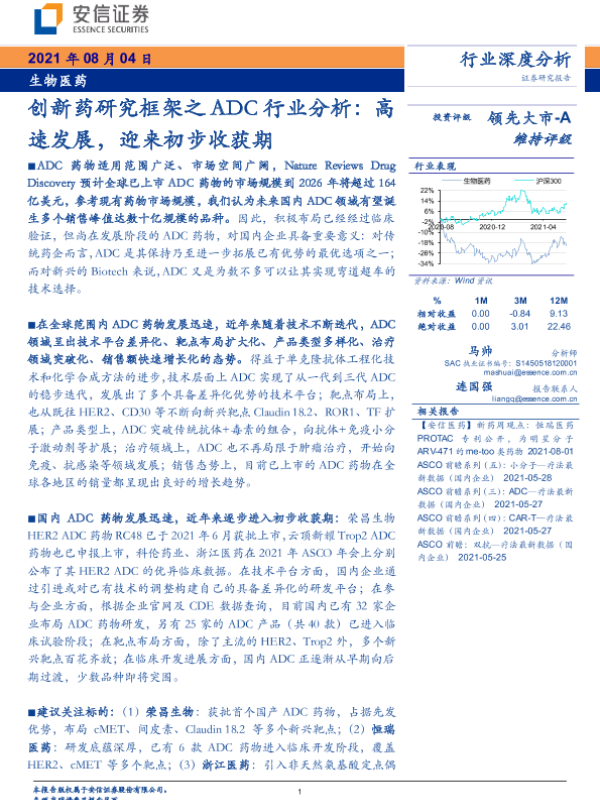【安信证券】【20210804】创新药研究框架之ADC行业分析:高速发展,迎来初步收获期-32页
