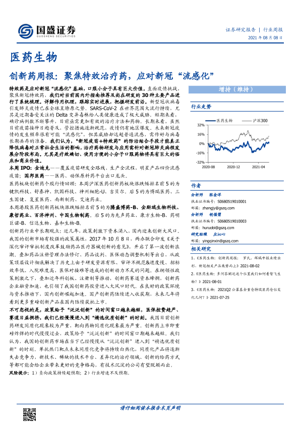 【国盛证券】【20210808】创新药周报:聚焦特效治疗药,应对新冠“流感化”-28页