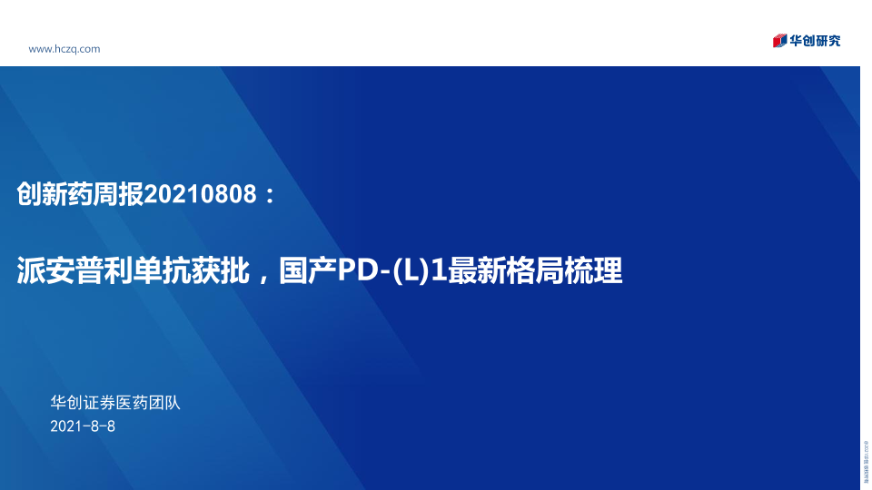 【华创证券】【20210808】创新药周报:派安普利单抗获批,国产PD-(L)1最新格局梳理-31页